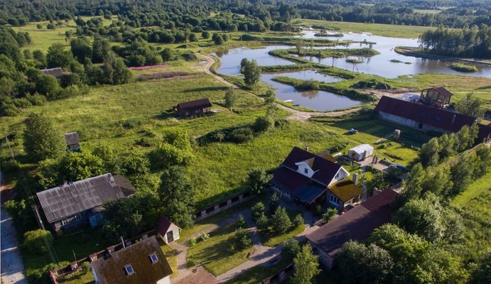 Выехать из города по трассе Р-23 и двигаться по ней до поселка Толмачево. В поселке повернуть на улицу Прохорова и двигаться все время придерживаясь главной дороги до поселка Осьмино. В Осьмино перед въездом в поселок будет развилка, на ней взять левее (ориентир – Георгиевская церковь), пересечь мост, проехать мимо церкви и небольшого жилмассива высотных домов, за ним взять налево и выехать из поселка (направление – деревня Новоселье). Ехать все время по главной дороге до деревни Менюши, за ней большая развилка, взять правее, через примерно 1,2 км поворот налево на Хотило.