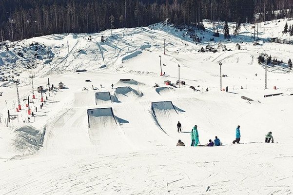 Удобное расположение INKERMAN Скай-бара (рядом со зданием проката курорта) позволяет зарядиться энергией перед началом спусков или завершить катание в кругу друзей с видом на заснеженные трассы.