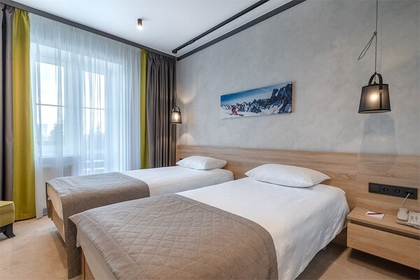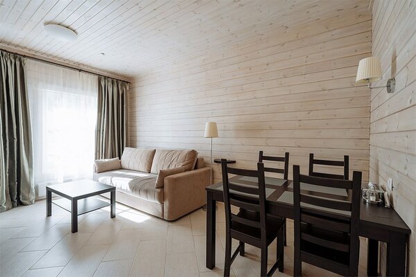 Из окон панорамного ресторана открывается изумительный вид на сосновый лес, а с другой стороны взору гостей предстает Ледовая арена, где можно понаблюдать за тренировками ведущих хоккейных клубов.