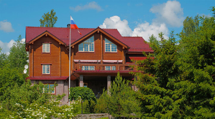 Самолетом до аэропорта Пулково, далее на рейсовом автобусе №39 до остановки «ул. Алтайская улица / ст. м. Московская», далее на метро до станции «Девяткино», далее на рейсовом автобусе №859 до остановки «Автостанция Приозерск», далее на рейсовом автобусе №125А/125Б до остановки «Школа», далее пройти 1,2 км до имения.