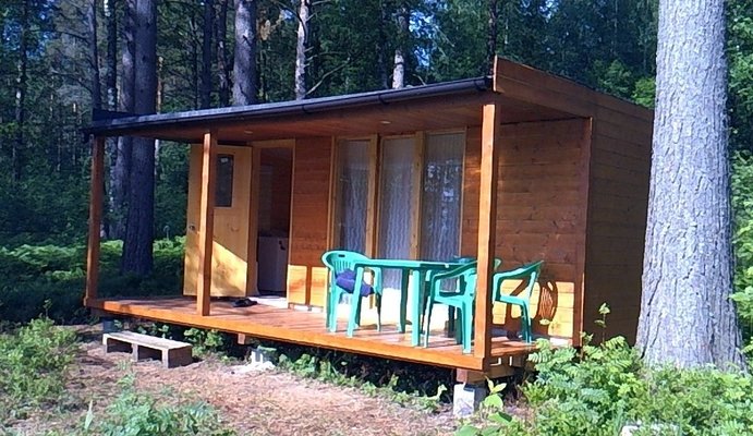 Новые современные коттеджи в скандинавском стиле с панорамным остеклением и уютной верандой рассчитаны на 2-4 человек и укомплектованы всей необходимой мебелью с кухней. Каждый коттедж имеет собственную территорию площадью 500-600 квадратных метров.