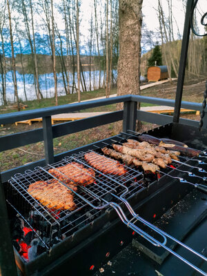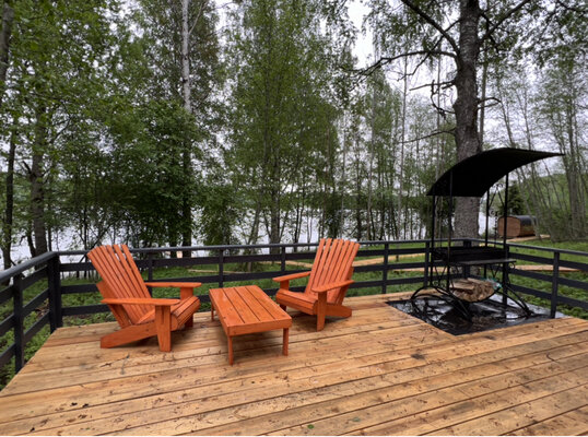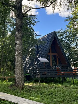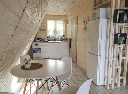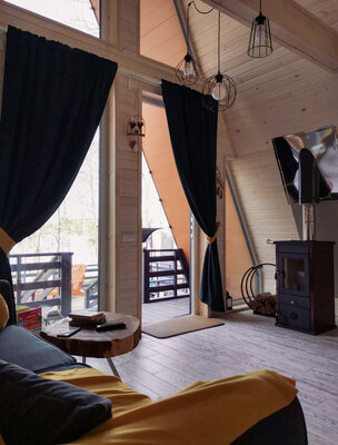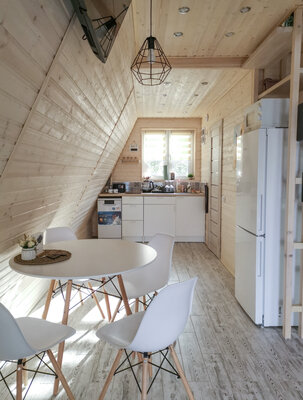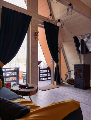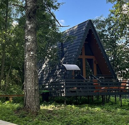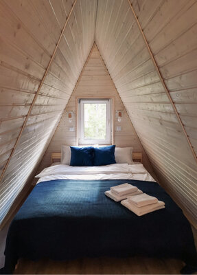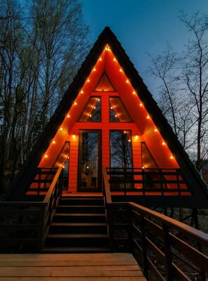 К вашим услугам комфортабельные А-домики с панорамными окнами, расположенные на разных уровнях территории. Каждый домик находится в окружении леса, на первой береговой линии, и оборудован всем необходимым для приятного отдыха: террасой с зоной для барбекю, теплыми полами, удобными кроватями, современной кухней с бытовой техникой и посудой, а также санузлом с душевой кабиной.