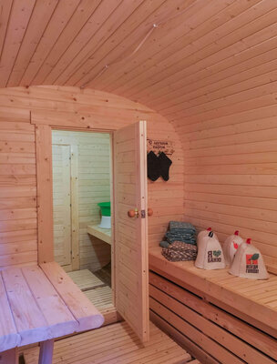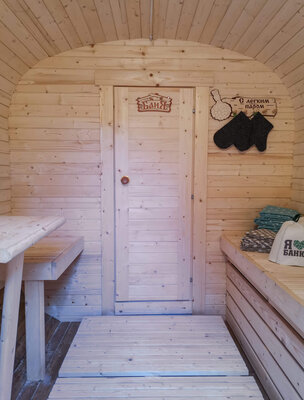 Баня состоит из зоны парилки, помывочной, зоны отдыха. Душевой в бане нет.