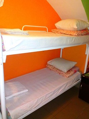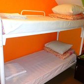 Спальное место на двухъярусной кровати в общем номере для мужчин и женщин
