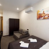 Для размещения на выбор представлены элегантно оформленные номера. В которых имеется не только эргономичная мебель, но и современная техника. Собственная ванная комната оснащена сантехникой, полотенцами и принадлежностями гигиены. Некоторые варианты включают в себя диван.