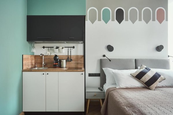 На мини-кухне есть необходимая бытовая техника: холодильник, микроволновая печь, чайник. Постояльцы смогут приготовить самостоятельно нехитрую еду. Кроме того, ежедневно подается свежеприготовленный континентальный завтрак.