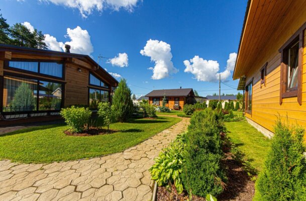 Комплекс окружен живописной природой, а центральное место занимает пруд, утопающий в зелени. Благоустроенная территория с ландшафтным дизайном располагает к спокойному отдыху, пикникам и созерцанию красивых видов.