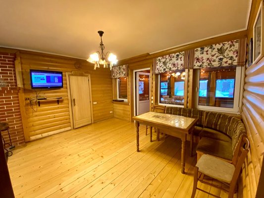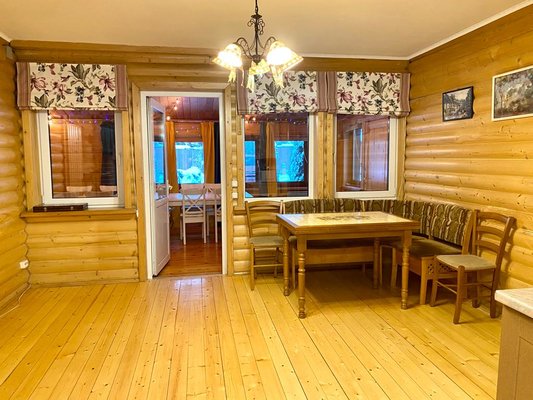 Коттедж рассчитан на компанию от 6 до 12 человек и находится на территории, полностью предоставляемой только вашей компании. Внутри расположены три изолированные спальни и одна проходная, банкетный зал, кухня, русская баня, два санузла и душевая.