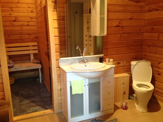 Гостям предлагается размещение в двух комфортабельных коттеджах, каждый из которых оборудован уютными спальнями, гостиной, кухней, санузлом с душем или ванной и сауной.