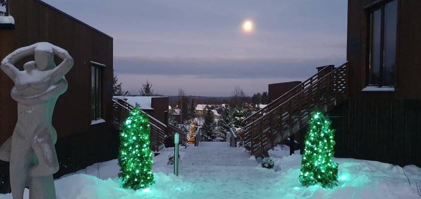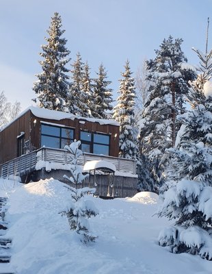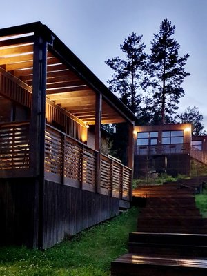 Из Санкт-Петербурга по Приозерскому шоссе( трасса А-121), 52 км. Не доезжая до горнолыжного курорта Игора, будет поворот направо по асфальтированной дороге. После поворота начинается граница крайних участков коттеджного посёлка Черничное, справа весит баннер Аренда коттеджей в Черничном, вам именно туда. Проезжаете через шлагбаум и прямо в гору к нам на Черничный склон.