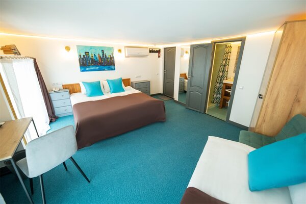«Куренбин смАРТ» — это не просто гостевой дом, а настоящая арт-галерея. Девять уютных номеров, расположенных на двух уровнях, каждый из которых представляет собой выставочное пространство с произведениями искусства. Коридоры также оформлены как галерея, погружая гостей в мир прекрасного. Все комнаты оснащены плазменным телевизором, сплит-системой, мини-холодильником, собственной душевой кабиной с косметическими принадлежностями и одноразовыми тапочками для вашего комфорта.