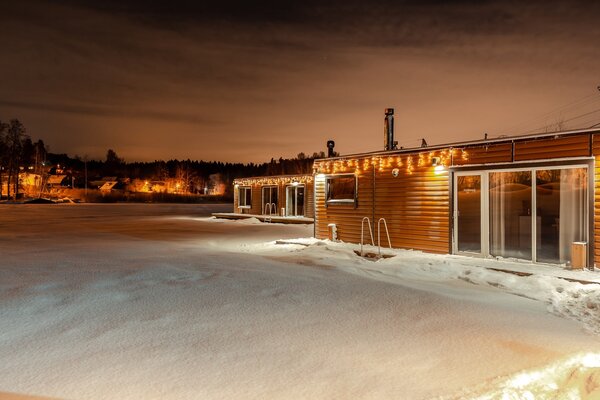 Для любителей коньков открыт каток на озере.
