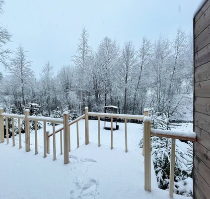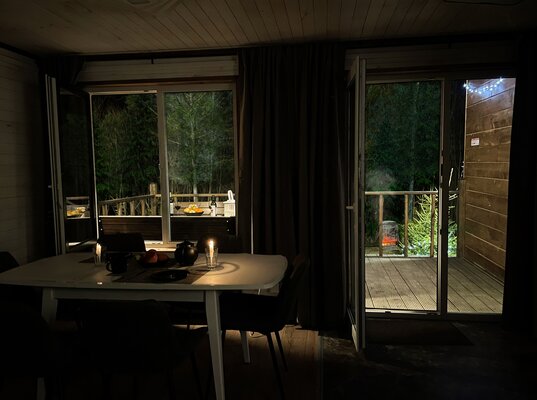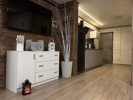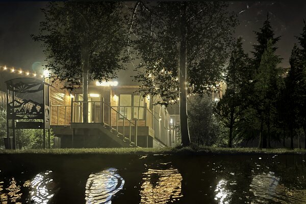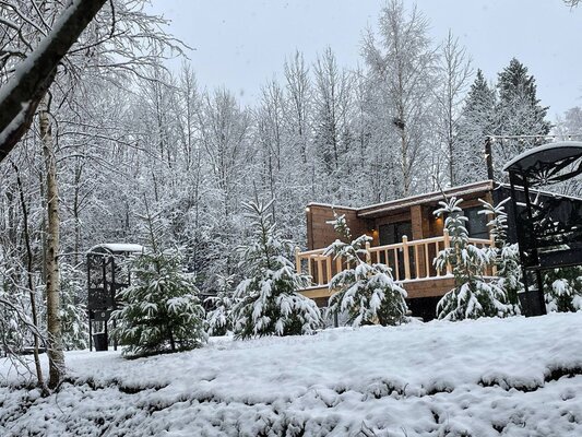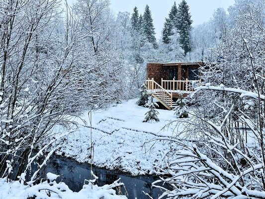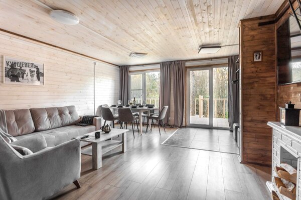На территории комплекса есть зона для барбекю и уютная терраса. Аренда коттеджей доступна на любой срок.