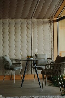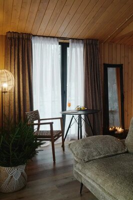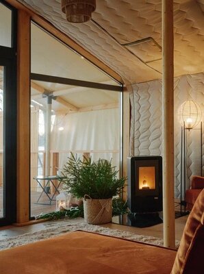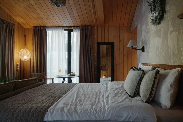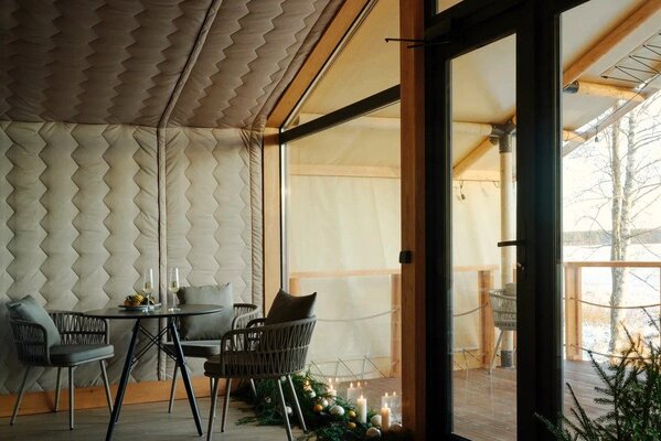 Выбирайте из уютных лоджий, романтических шатров или стильного гестхауса – каждый уголок предлагает неповторимый отдых на природе, у воды или среди деревьев. Расслабьтесь в фито-купели с подогревом, наслаждаясь потрясающим видом.