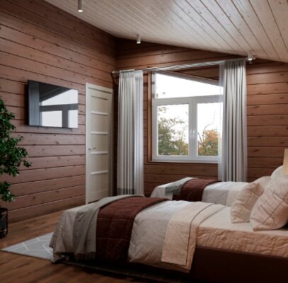 Банный комплекс с финской сауной и комнатой отдыха рассчитан на комфортный отдых компаний до 12 чел.