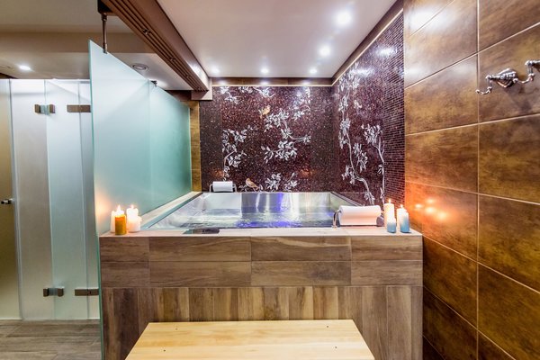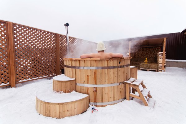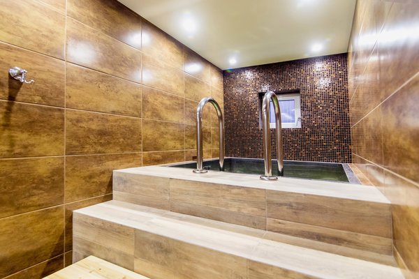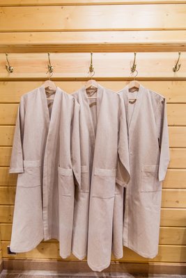 В аренду комплекса входит набор банных принадлежностей: тапочки, полотенца, простыни, халаты, банные шапки и косметика. Также час угостят чаем на травах.