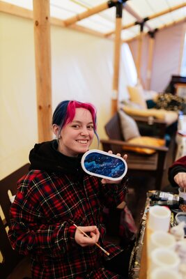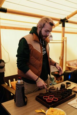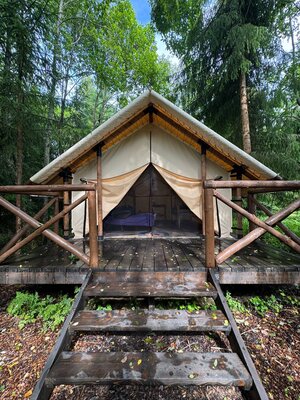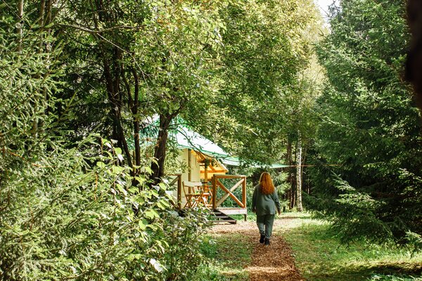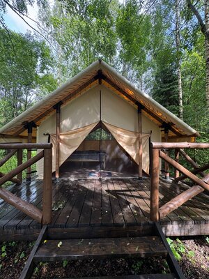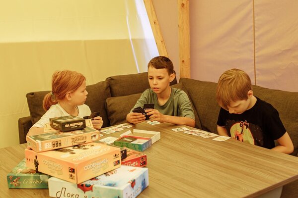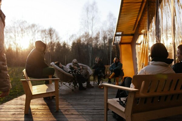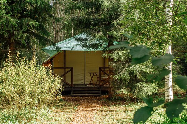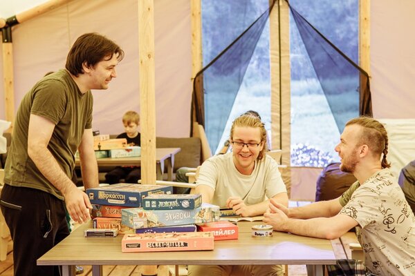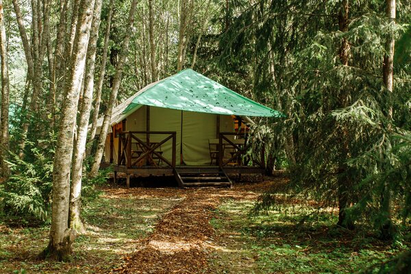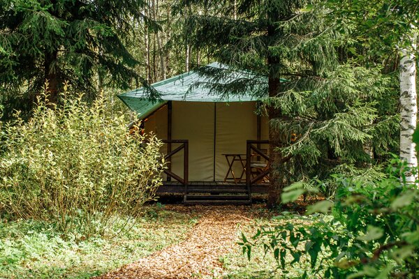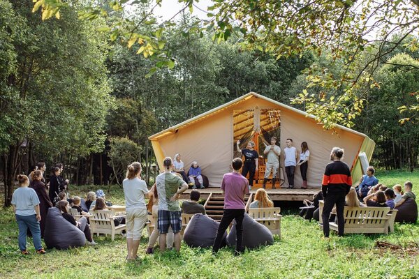На лесной опушке расположен просторный пати-тент площадью 60 м², идеально подходящий для разнообразных мероприятий. Здесь можно провести время за настольными играми, устроить интересные квизы, а также организовать тимбилдинг или ретрит.
