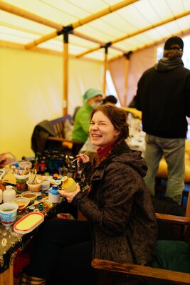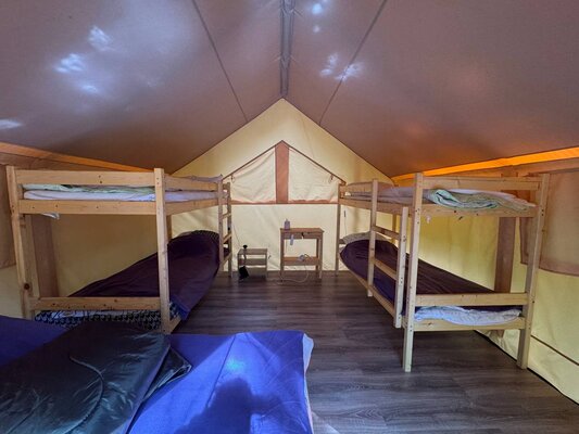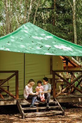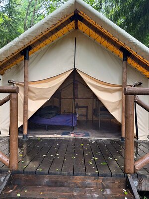 Для семейного или корпоративного отдыха «Лисья Дача» предлагает просторные сафари-тенты. Гости могут готовить самостоятельно на полностью оборудованной кухне, мангале или в казане на свежем воздухе. А при желании — доверить все кулинарные заботы нашим профессионалам.