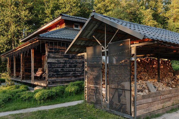 Крытая беседка с мангалом включена в стоимость аренды бани.