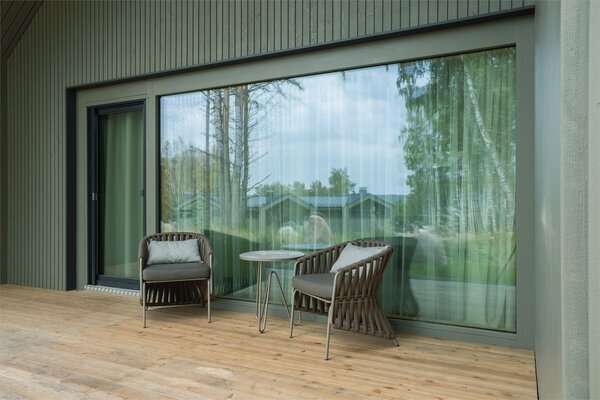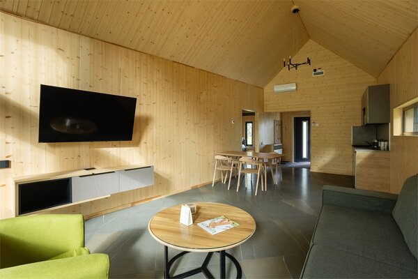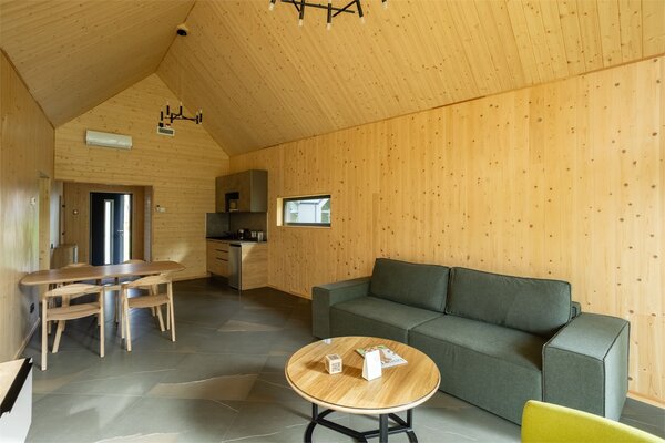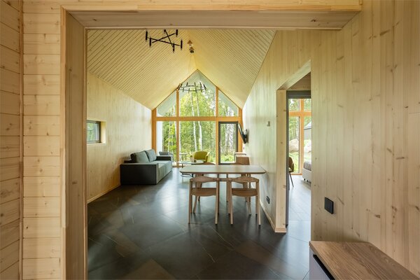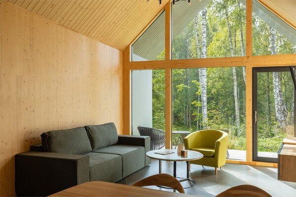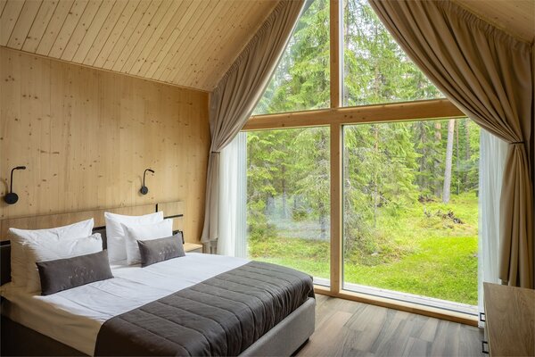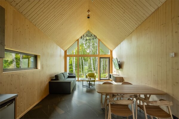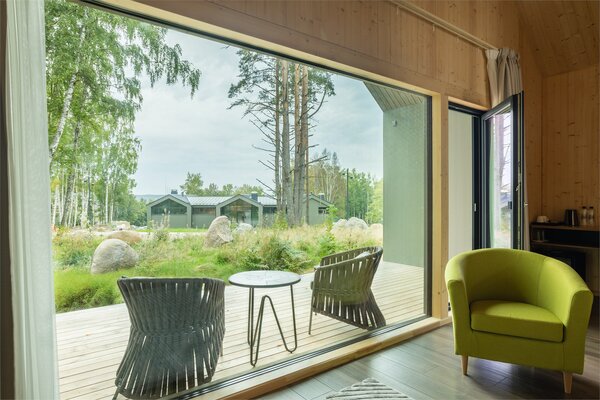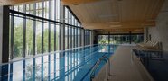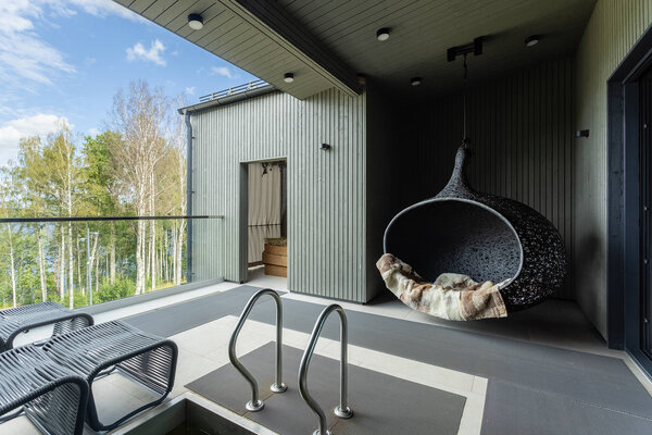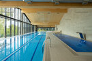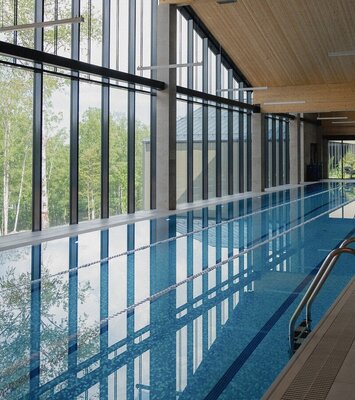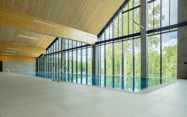 В аквакомплексе находится плавательный бассейн длиной двадцать четыре метра, оснащённый большими окнами, через которые можно любоваться озером и лесом. Это идеальное место как для интенсивных тренировок, так и для спокойного отдыха у воды.