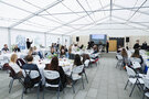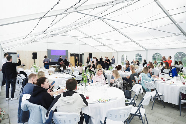 Курорт «MARJA Villas & Spa» предлагает летний шатер, который предоставляет обширную площадь в триста семьдесят пять квадратных метров, способную разместить до двухсот гостей. Внутри шатра установлены круглые столы с скатертями и удобные стулья для комфортного размещения.