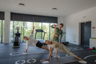 Уютная панорамная фитнес-студия с живописным видом на озеро предлагает возможность посещения тренировок в течение одного часа в любое время работы АКВА-комплекса. Гостям, желающим заниматься индивидуально, доступны занятия с личным тренером. Предварительная запись осуществляется через отдел бронирования или непосредственно в АКВА-комплексе, где можно выбрать один из форматов тренировок: персональные занятия, сплит-тренировка для двоих или занятия в мини-группе до трех человек.