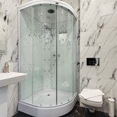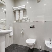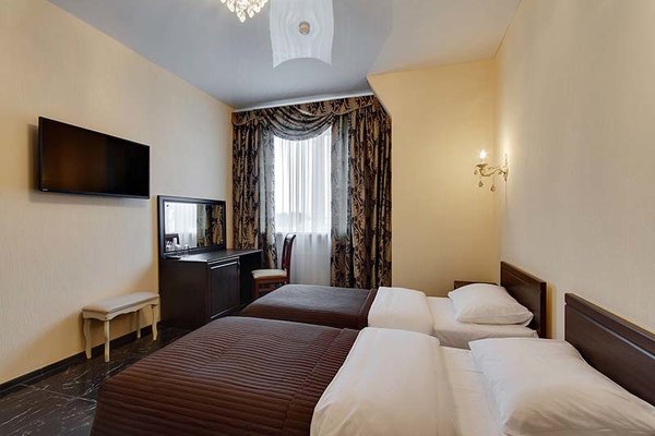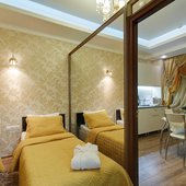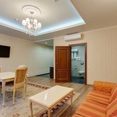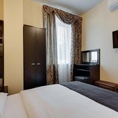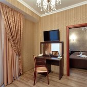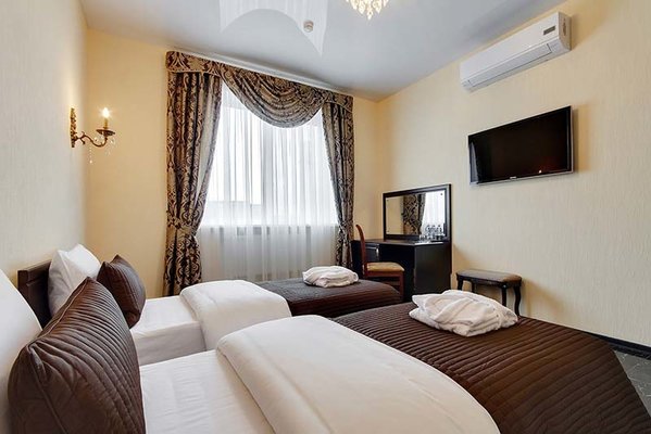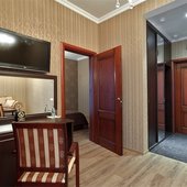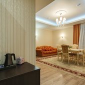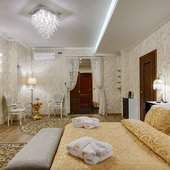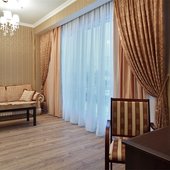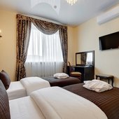 Все номера выдержаны в пастельных тонах, вас порадует привлекательный интерьер уютных номеров высокого европейского уровня, функциональная мебель и сантехника, комфортная ванная комната с душевыми кабинами, набором туалетных принадлежностей, фильтрацией воды, теплыми полами.