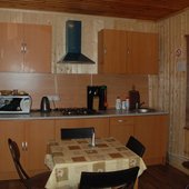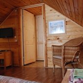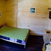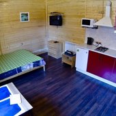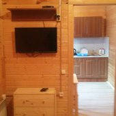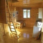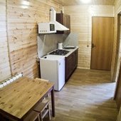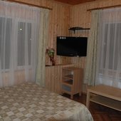На базе отдыха есть небольшие уютные номера для двоих, коттеджи на 4-8 персон и даже огромный дом с камином, способный вместить компанию из 14 человек. В каждом доме есть отопление, санузел с душем, кабельное телевидение. В кухне есть посуда и столовые приборы, в спальнях – постельное белье и полотенца для лица и тела. На верандах установлены мангалы.