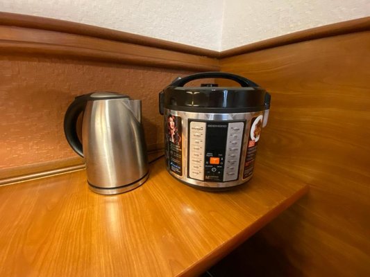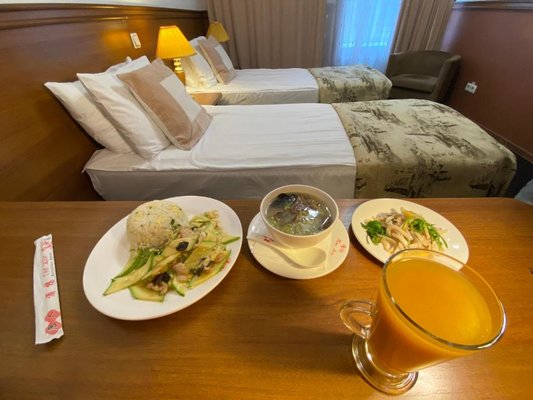 Питание гостей организуется в баре на территории, где доступно к заказу разнообразное меню. Также на этажах установлены кулеры с водой.