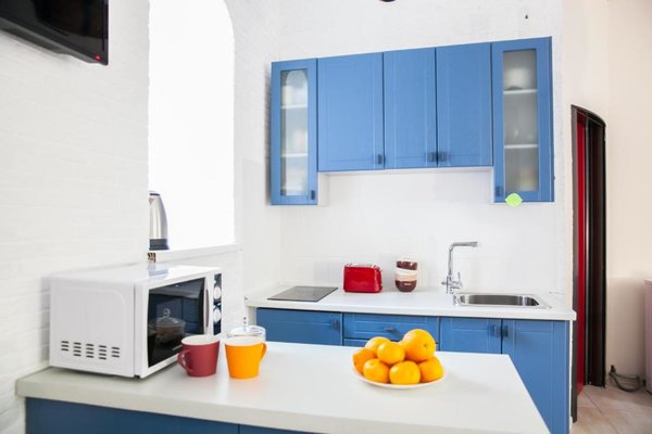Для гостей есть полностью оборудованная общая кухня. Также в шаговой доступности расположены разнообразные заведения общественного питания.