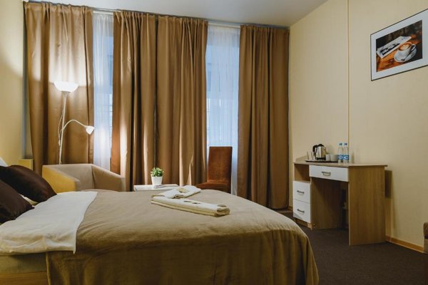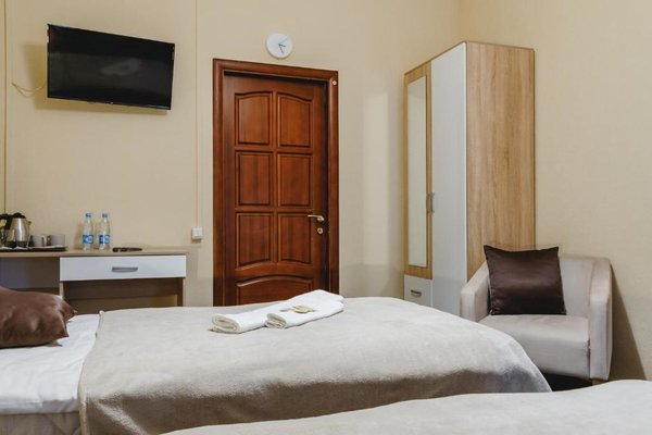 Поездом до ж/д вокзала Московский (г. Санкт-Петербург), далее на метро до станции «Владимирская», далее пройти пешком 870 м до отеля.
