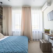 Номерной фонд представляют светлые и полностью оснащенные номера, выполненные в современном стиле. В распоряжении гостей собственная ванная комната с набором полотенец и туалетными принадлежностями, а также удобная мебель, кондиционер и жк-телевизор.