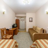 По-домашнему уютные номера оформлены всем необходимым для комфортного проживания и отдыха. В каждом из них есть удобная мебель и техника, а также собственная ванная комната с феном.