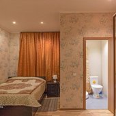 В распоряжении проживающих восемь номеров категории "Стандарт", "Премиум" и "Люкс". Все комнаты оборудованы двуспальной кроватью, шкафом, столом, стульями, тумбой, телевизором, холодильником и феном.