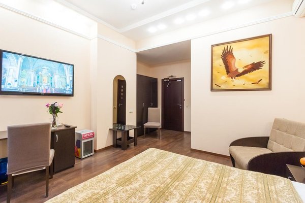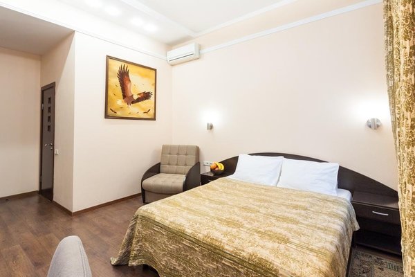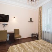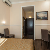 Номерной фонд представлен комфортными номерами категорий "Стандарт", "Комфорт", "Полулюкс" и "Люкс". Светлые номера наполнены домашним уютом, все они хорошо звукоизолированы и никакой посторонний шум не помешает отдыху, в них имеется удобная мебель, телевизор, кондиционер, ванная комната. Уборка проводится ежедневно. Если необходимо привести в порядок одежду, то можно воспользоваться швейными и гладильными принадлежностями.