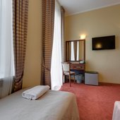 В номерах есть все необходимое для комфортного проживания. Категории могут быть оснащены балконом, видом на Манеж или видом в тихий двор. Здесь есть удобная мебель, система кондиционирования, а также собственная ванная комната.