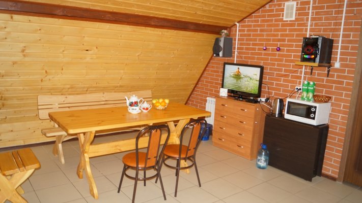 К услугам отдыхающих две русские бани, которые ни кого не оставят равнодушными. Также все номера имеют категорию стандарт, каждый их которых оснащен эргономичной мебелью, Интернетом Wi-Fi и новыми санузлами.