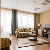 Поездом до ж/д вокзала Московский (г. Санкт-Петербург), далее 590 м до станции «Маяковская», далее на метро до станции «Беговая», далее на автобусе №211 до остановки «Заречная дорога», далее пройти 400 м до отеля.
