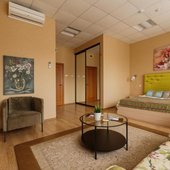 Размещение возможно в отеле категории 5, предлагающем номера Люкс и Стандарт, оборудованные всем необходимым для комфортного пребывания. Также на территории клуба расположен СПА-отель «Золотой Ручей» 3 с шестью уютными номерами.