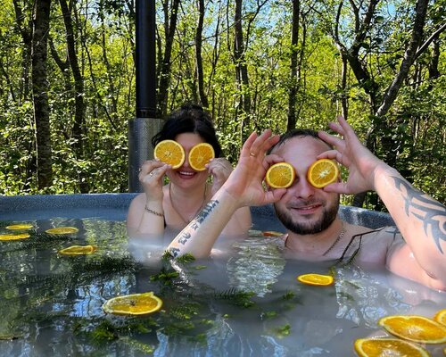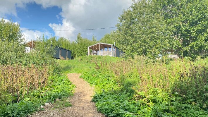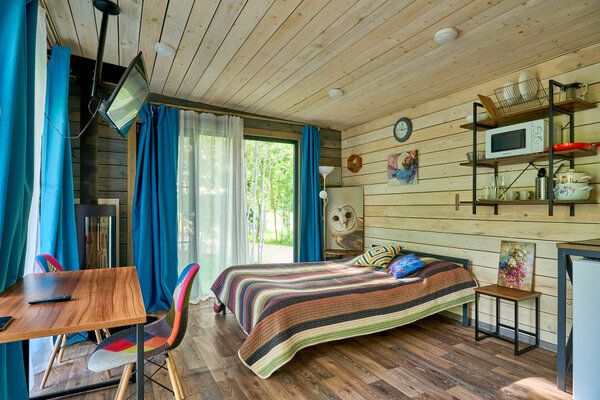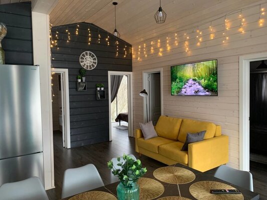 Выбирайте уютные коттеджи или банные домики с купелями, разместившиеся на ухоженной территории с зарыбленными прудами, экологическими тропами и очаровательным водопадом.