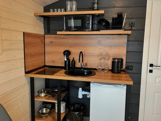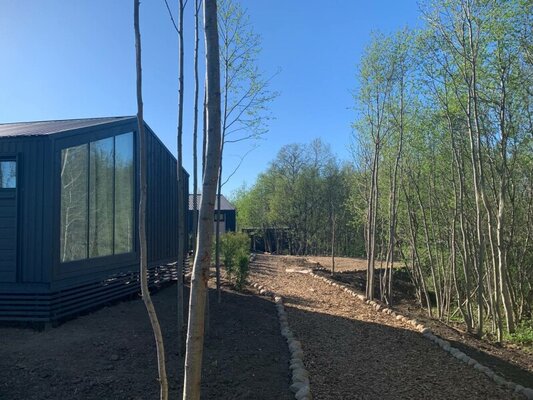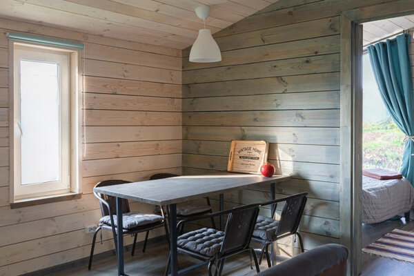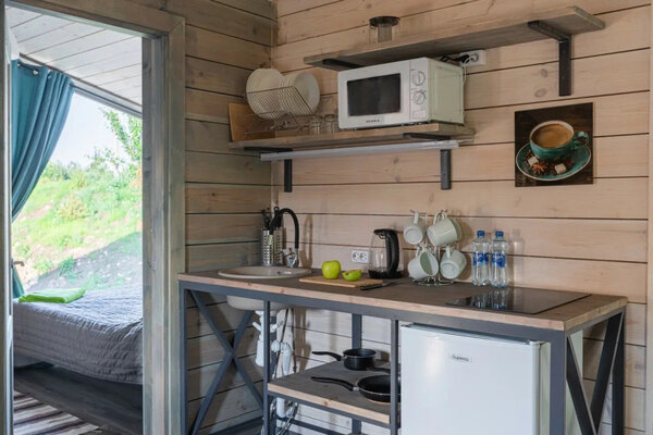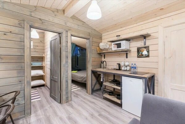 Завершите свой день в настоящей русской бане, окунувшись в купель под открытым небом. Каждый банный домик оснащен уютной гостиной, кухней, террасой и мангалом.