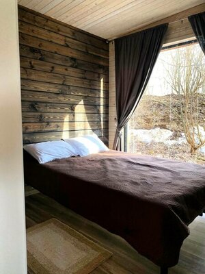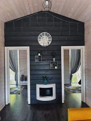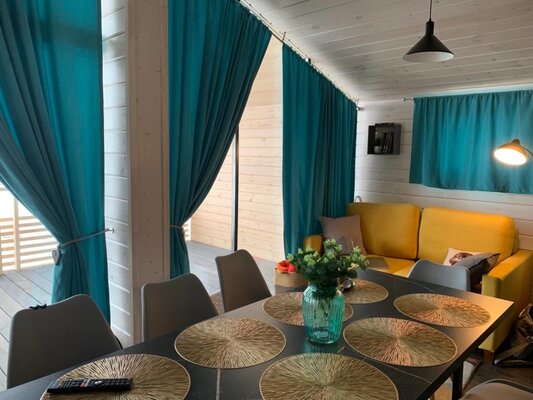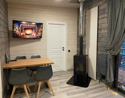 Банный дом площадью 50 м2 до 6 гостей с просторной гостиной зоной и панорамным остеклением, парной, душевой, уборной, террасой, мангальной зоной. В бане имеется все необходимое для комфортного отдыха.