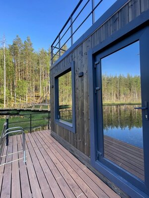 Уникальное пространство для очищения души и тела. Баня расположена прямо на воде, в ней уютная парная с панорамным видом на озеро, комфортная комната отдыха, душ и санузел.