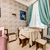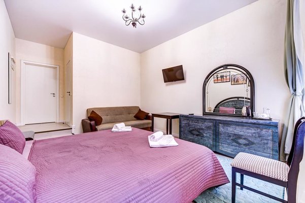 Уютные комнаты располагают классическим интерьером, цветовое оформление и стилистика приятны для проживания и отдыха. В каждом предусмотрена вся необходимая мебель и техника. Ванная укомплектована стандартным набором сантехники, прилагается комплект полотенец и гигиенические принадлежности.