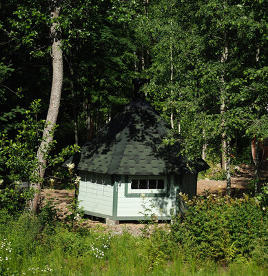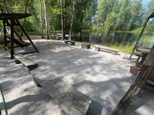 Баня стоит у берега озера. Имеет только предбанник, без помывочной.