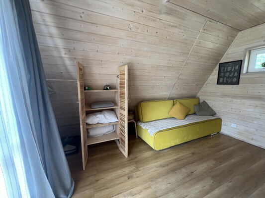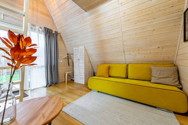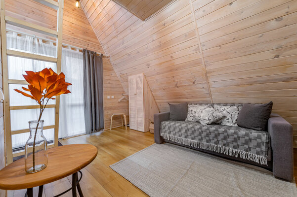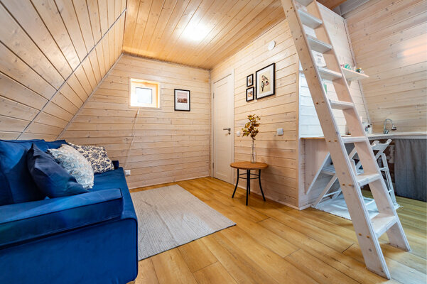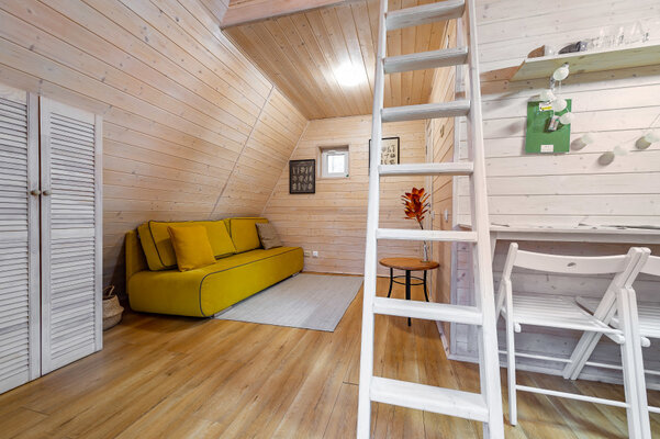 Мансарды домиков примечательны тем, что легко превращаются в домашний кинотеатр, если воспользоваться миниатюрным проектором.