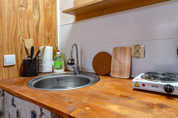 Домик, напоминающий игрушечную избушку, создан для посиделок с друзьями за общением, согреванием в прохладную погоду и готовки еды (мясной шашлык, рыба, овощи) на огне с пылу с жару.