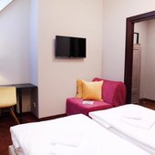 Для размещения постояльцам предлагаются комфортные койко-места в уютных комнатах хостельного типа и полноценные двухместные и семейные номера. Для удобства имеется общий лаундж-гостиная с телевизором, где можно устраивать посиделки.