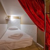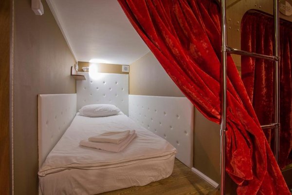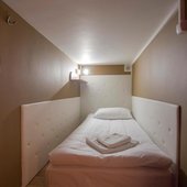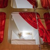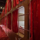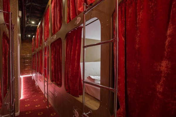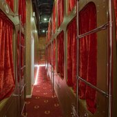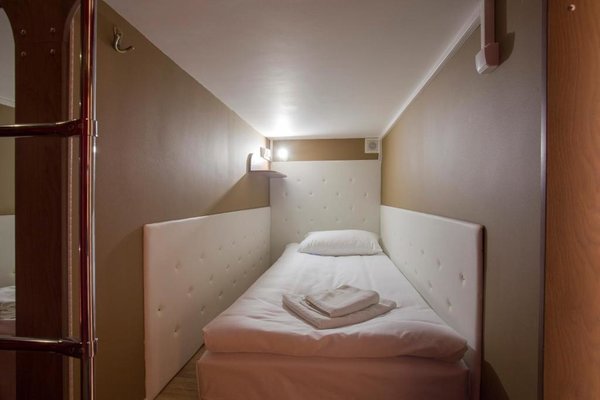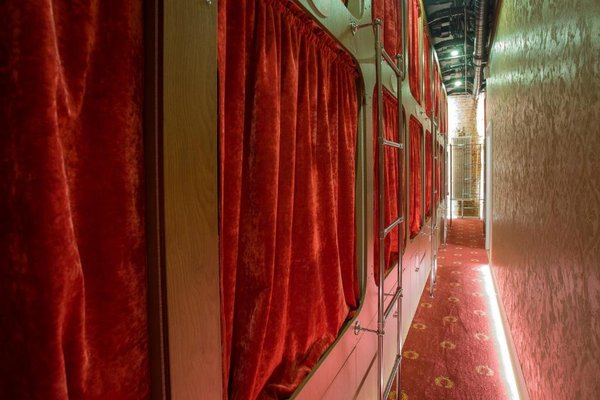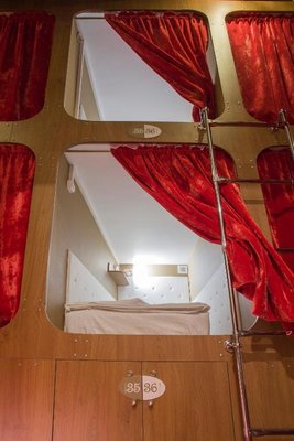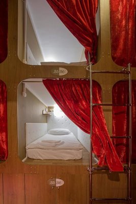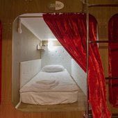 Размещение происходит в одноместных капсулах, которые оборудованы шторками и удобными матрасами, полкой для хранения личных вещей, светильником и розеткой. Удобства в виде душа и туалета общие для всех постояльцев, также прилагается комплект полотенец.