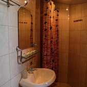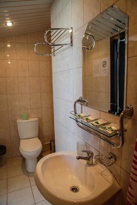 На территории есть необходимая бытовая техника, бар, где можно вкусно позавтракать, отличная сауна, в которой могут согреться гости, не привыкшие к дождливой погоде.